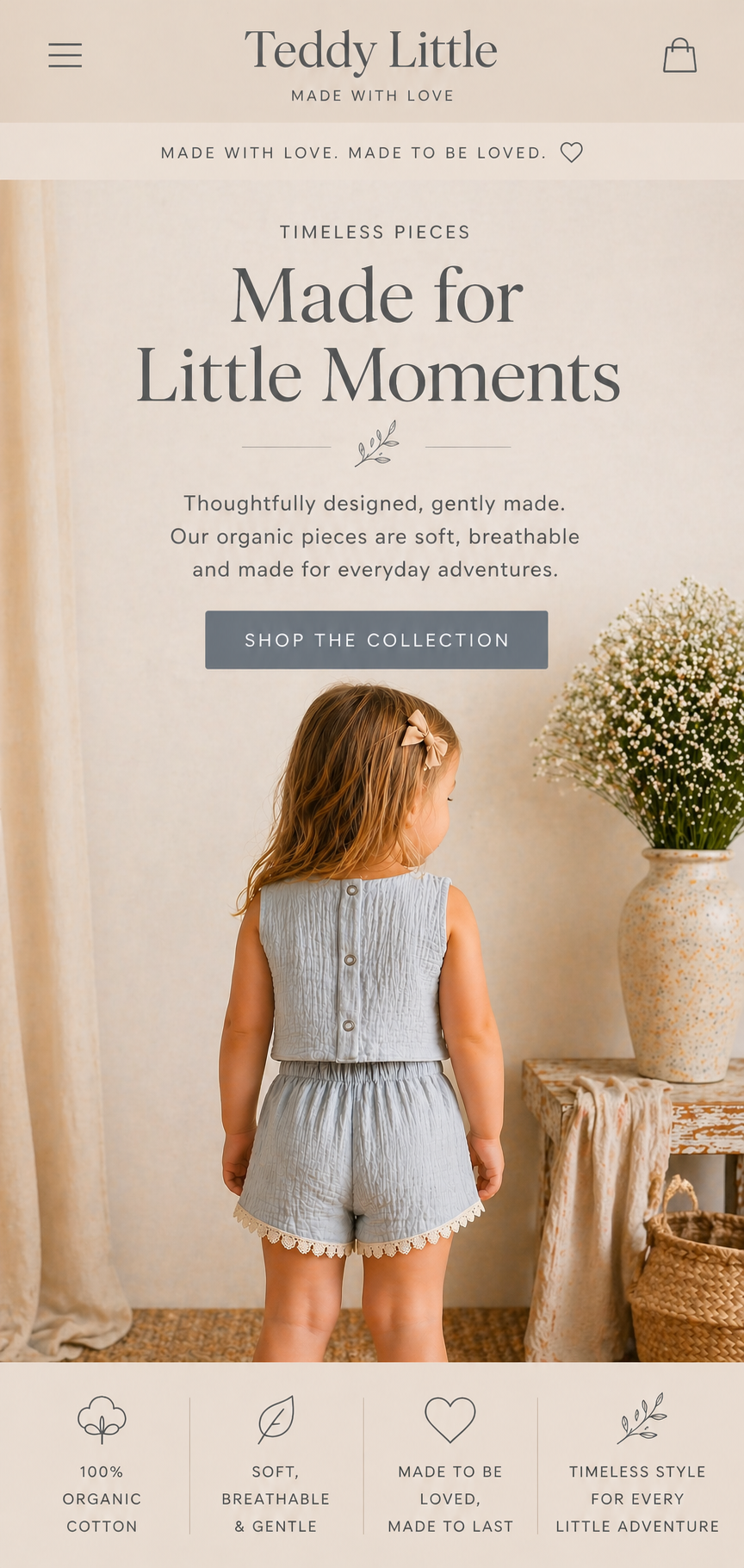 From playful joggers and embroidered sweatshirts to memory quilts and pillows, every item is made with care, quality, and a touch of childhood magic. Made to be worn, loved, and remembered.